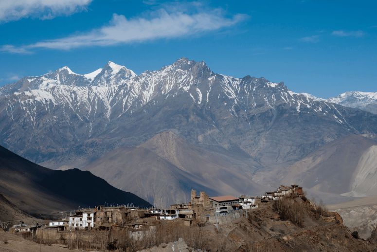 Muktinath, situated in the Mustang region, is a revered temple holding religious significance for Hindu and Buddhist pilgrims. Many visitors believe that bathing in Muktinath can absolve their lifetime of sins. The temple, also known as Chumig Gyatsa, is nestled at an altitude of 3,710 meters at Thorong-La mountain pass amidst snow-capped mountains in Nepal’s Mustang district—a highlight along the famous Annapurna Circuit trek.